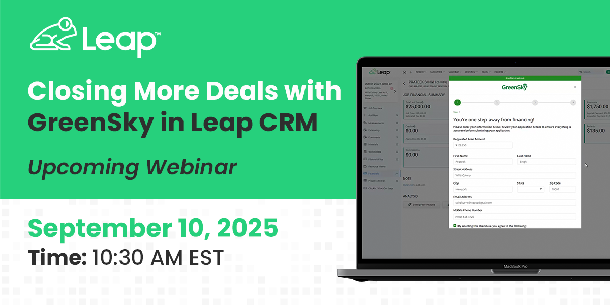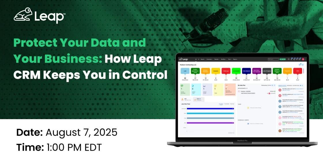 Take control of your data with Leap CRM. Built for contractors, Leap offers secure workflows, customizable permissions, and tools that protect your business and customer information.
