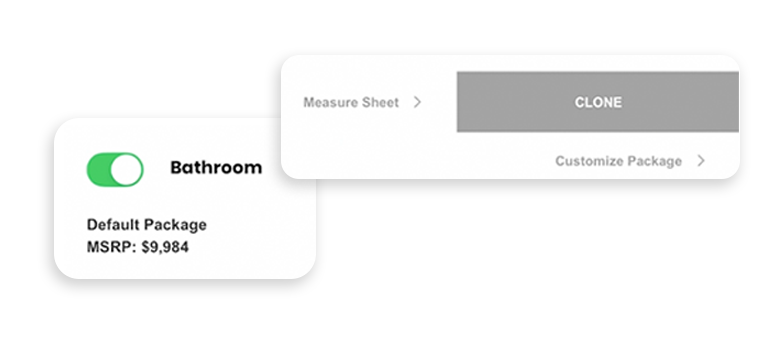 When a job covers multiple rooms or areas, like a home with four bathrooms to remodel, reps can build out one category and clone it for each space. Every room stays separate, so pricing breakdowns are clear and easy to follow. If a homeowner wants to see the estimate without one of the rooms, the rep can toggle it off on the spot instead of manually removing line items.